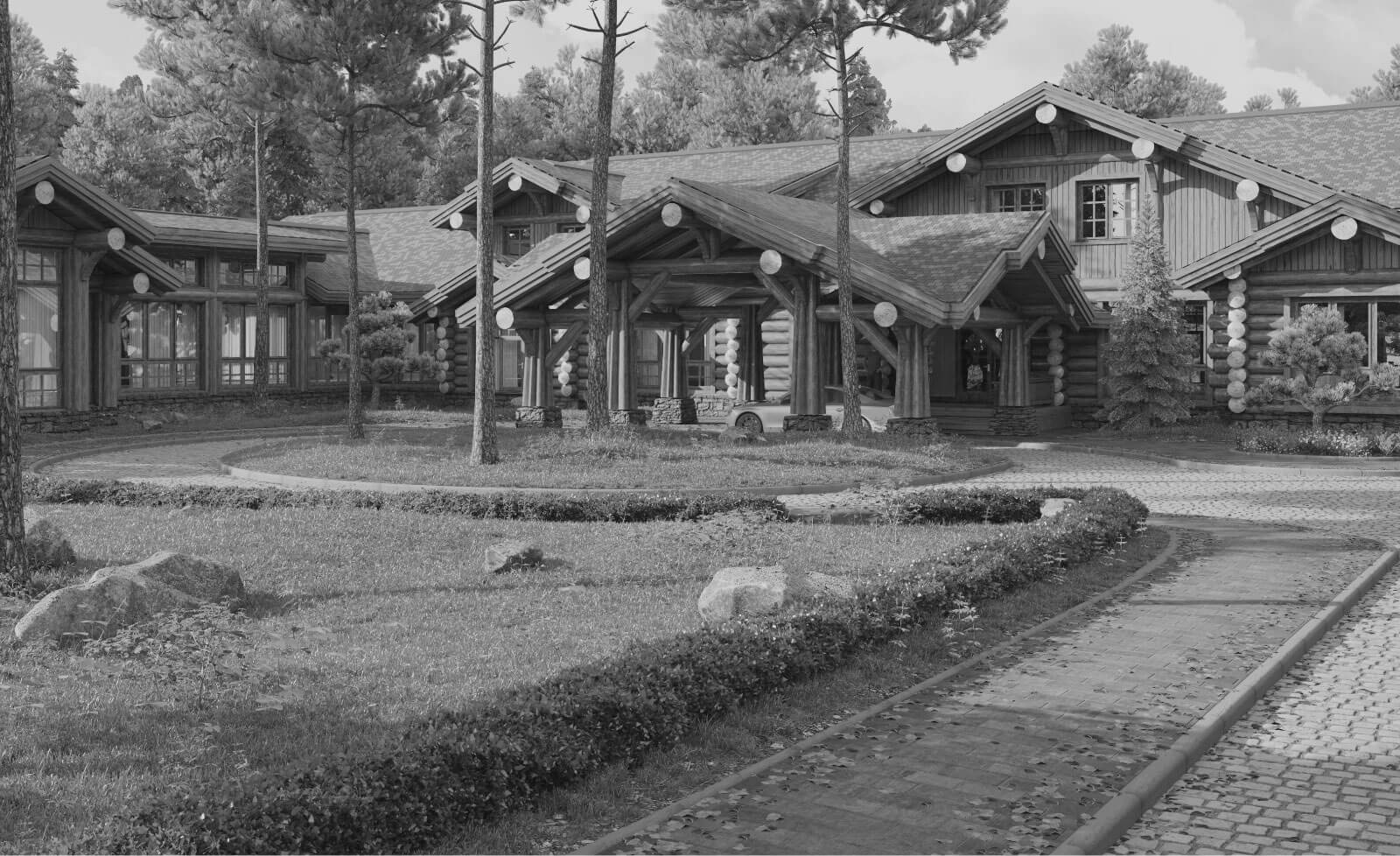А вот первый проект носит теперь название “Сегежа”. Его вы видите на визуализации. Названный в честь маленького карельского города, комплекс стал его полным антиподом по части масштаба — 1 700 квадратных метров общей площади.