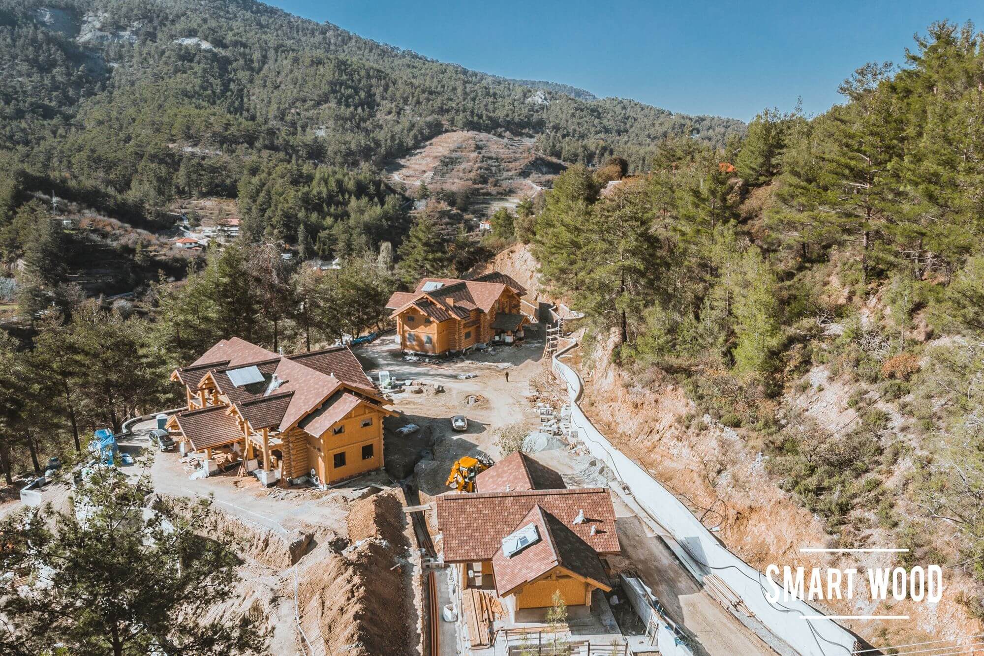Проект «Агиос» — это самый большой деревянный комплекс на острове Кипр. 2 жилых дома, две бани, гараж и въездная группа, из которых состоит проект, занимают общую площадь около 2000 м2.