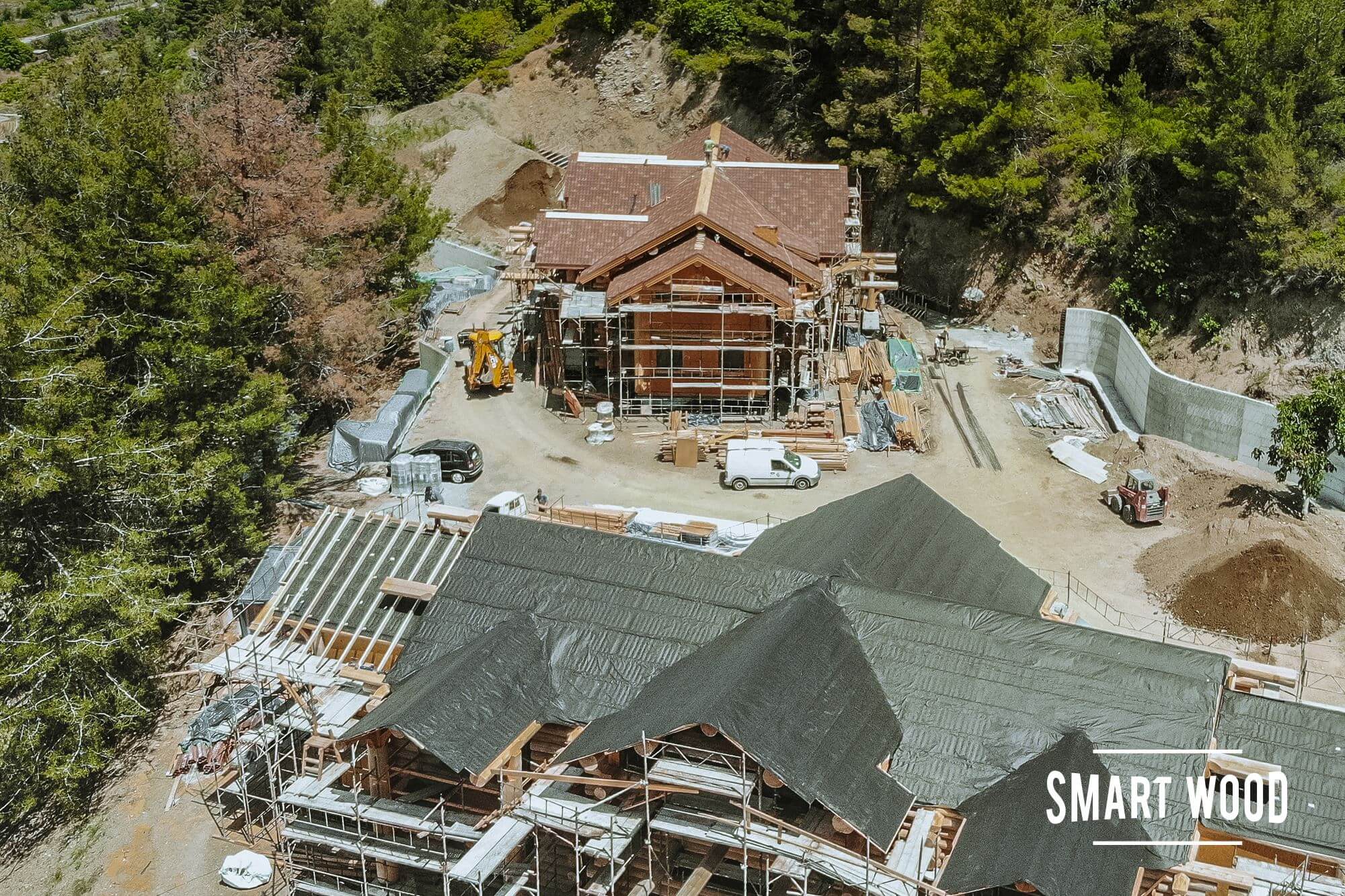 Все строения комплекса выполнены с применением различных технологий ручной рубки из материалов, которые были привезены на остров из России и Европы. Основной материал строительства — высококачественный сибирский кедр. Сруб полностью изготовлен на производственной базе Smart Wood в Подмосковье и доставлен на остров морем. Управление проектом ведется из двух точек — непосредственно на объекте и из основного офиса компании-застройщика Smart Wood в Москве.