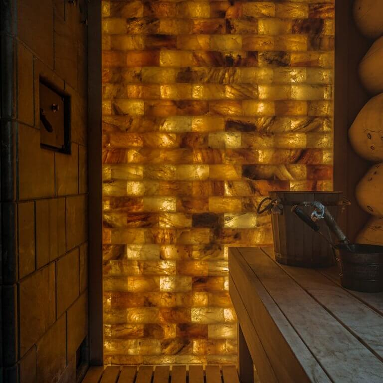 Гималайская соль в интерьере бани