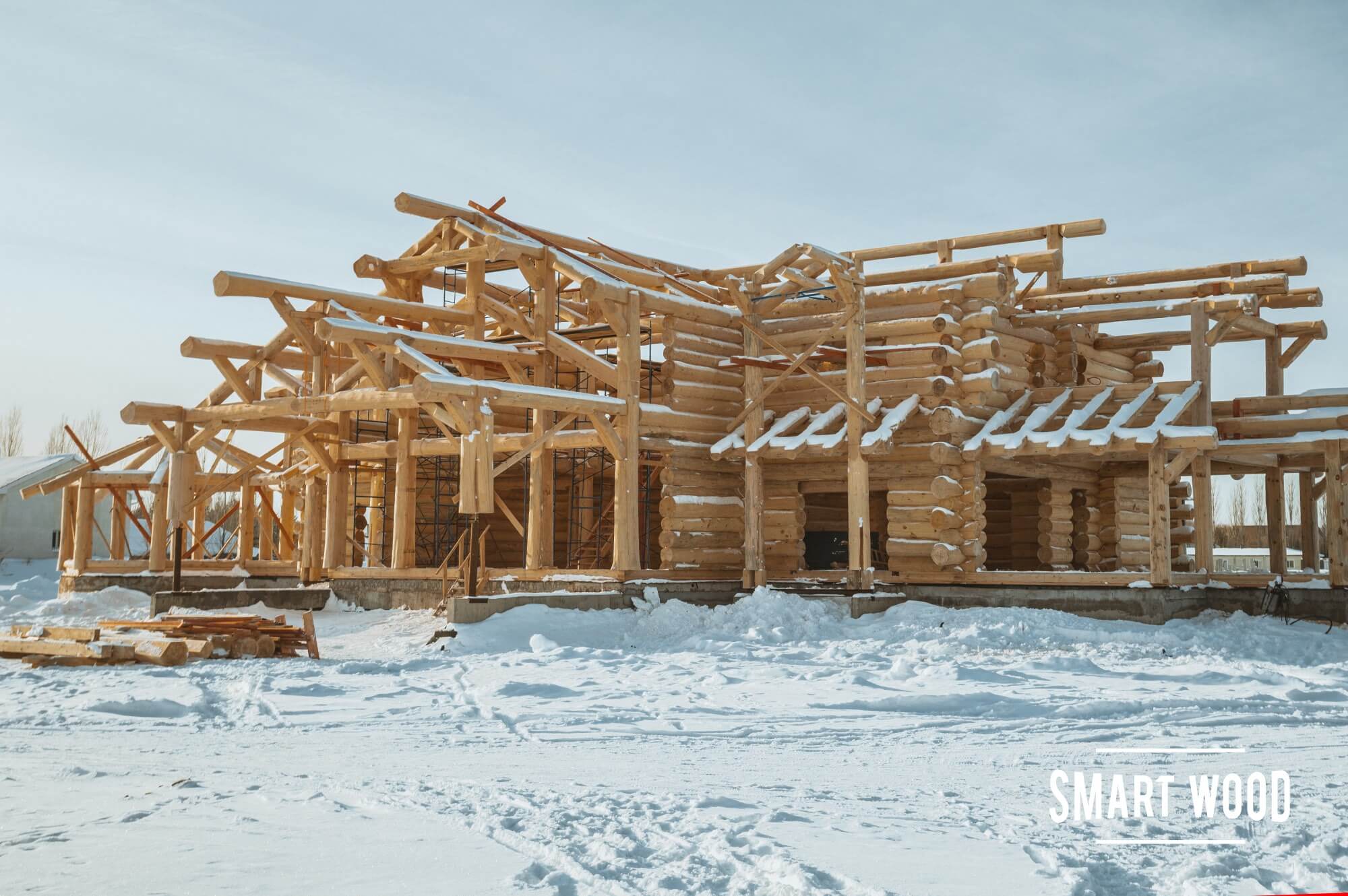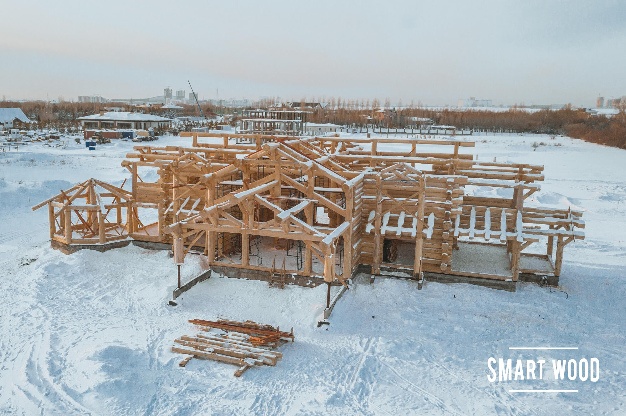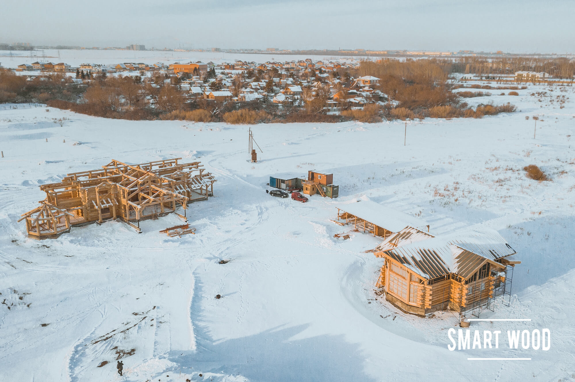 Последние сводки с проекта под Астаной были в середине 19-го. Тогда мы писали о том, что оба сруба — дом площадью 700 м2 и гостевой дом/баня 240 м2 — находятся на производственной площадке в Подмосковье. Но забыли упомянуть, что на проекте довольно любопытная ситуация с дедлайном — закончить комплекс необходимо к концу года. У владельца есть мечта — отметить день рождения в своем новом доме, и сейчас мы делаем все, чтобы она сбылась. А учитывая то, что сам дом «Эмба» — это самый большой отдельный деревянный объект, который нам доводилось строить, то и здоровое рабочее напряжение на площадке царит не первый месяц.