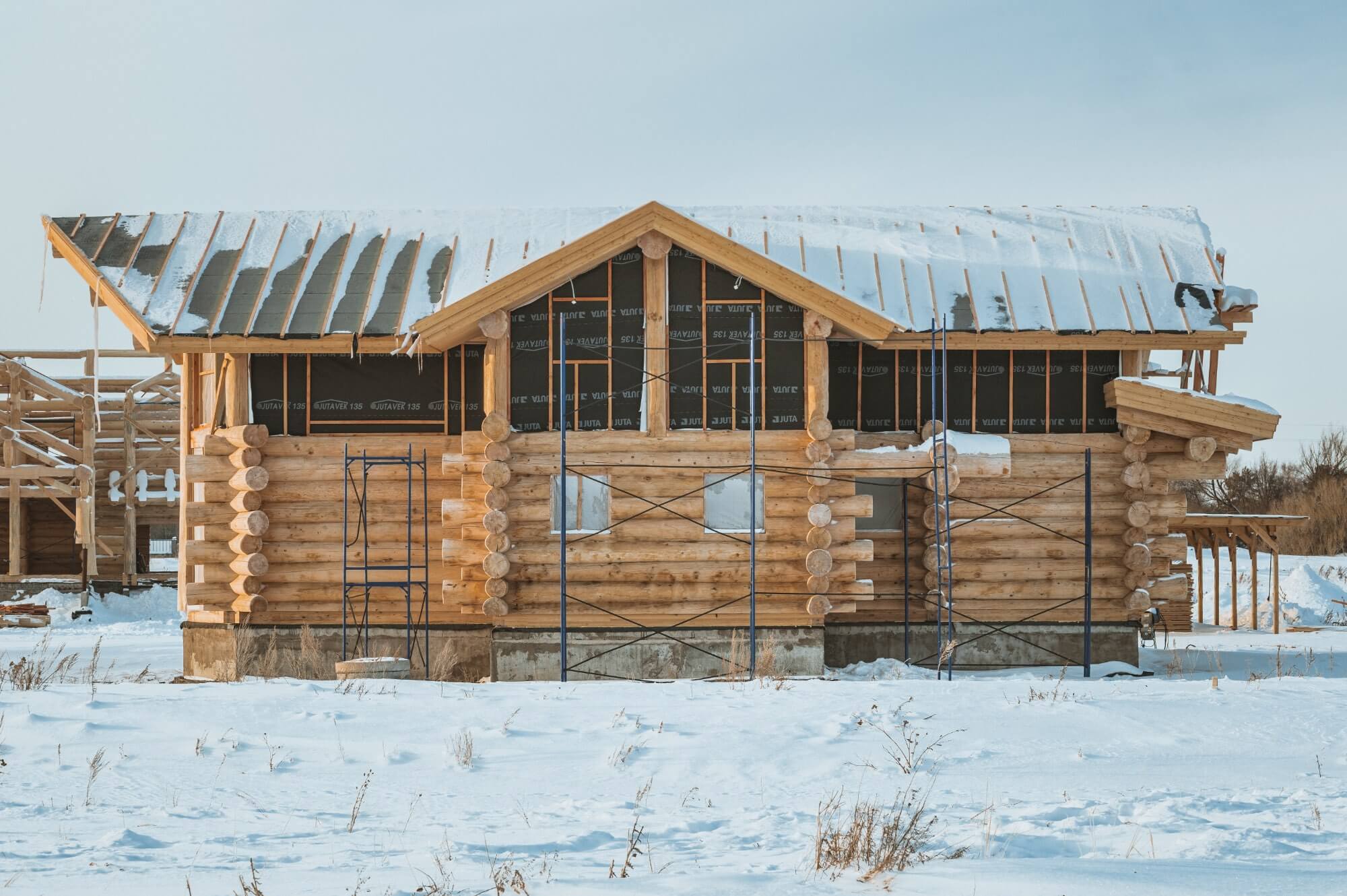 Начало осени было посвящено работе над кровлей и перегородками бани, проведением инженерных сетей. Параллельно мы начали собирать сруб дома на фундаменте и приступили к кровельным работам. Стремительно наступающий зимний сезон и капризная погода в Астане диктовали свои условия — главной задачей стало выполнить устройство кровли до наступления холодов.
