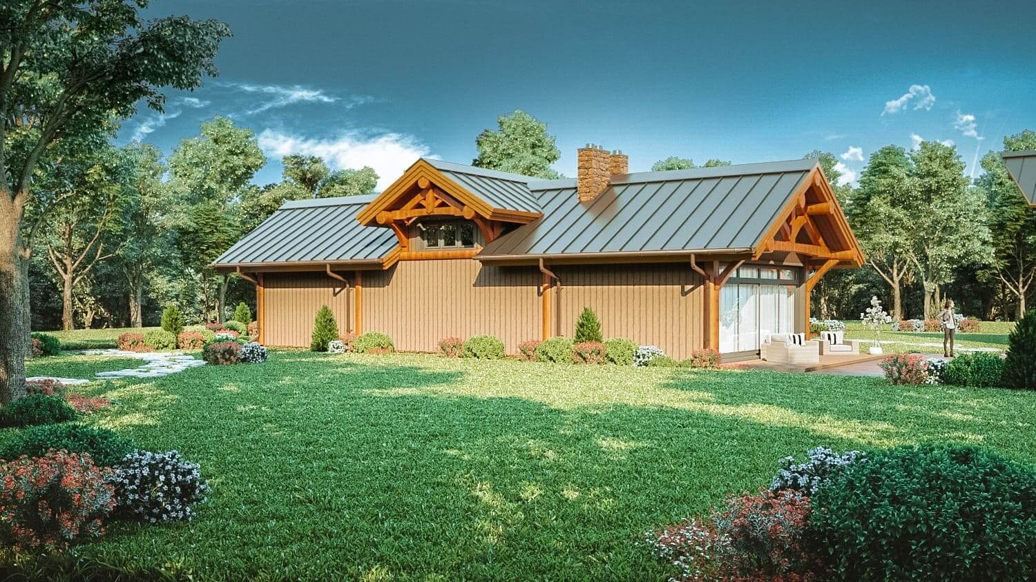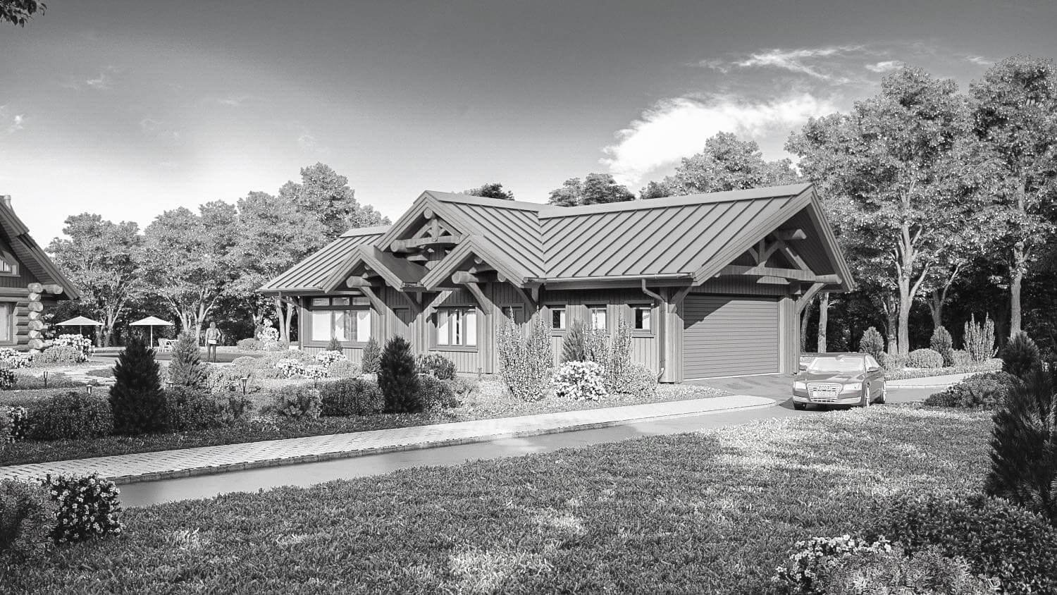 Заказчик постановил, что гараж нужен непременно, но когда мы начали обсуждать проект, оказалось, что все не так просто. И в процессе гараж превратился в систему 3 в 1. Собственно гараж на 2 машины, комнату охранника и беседку в виде большого зала с камином и барбекю.