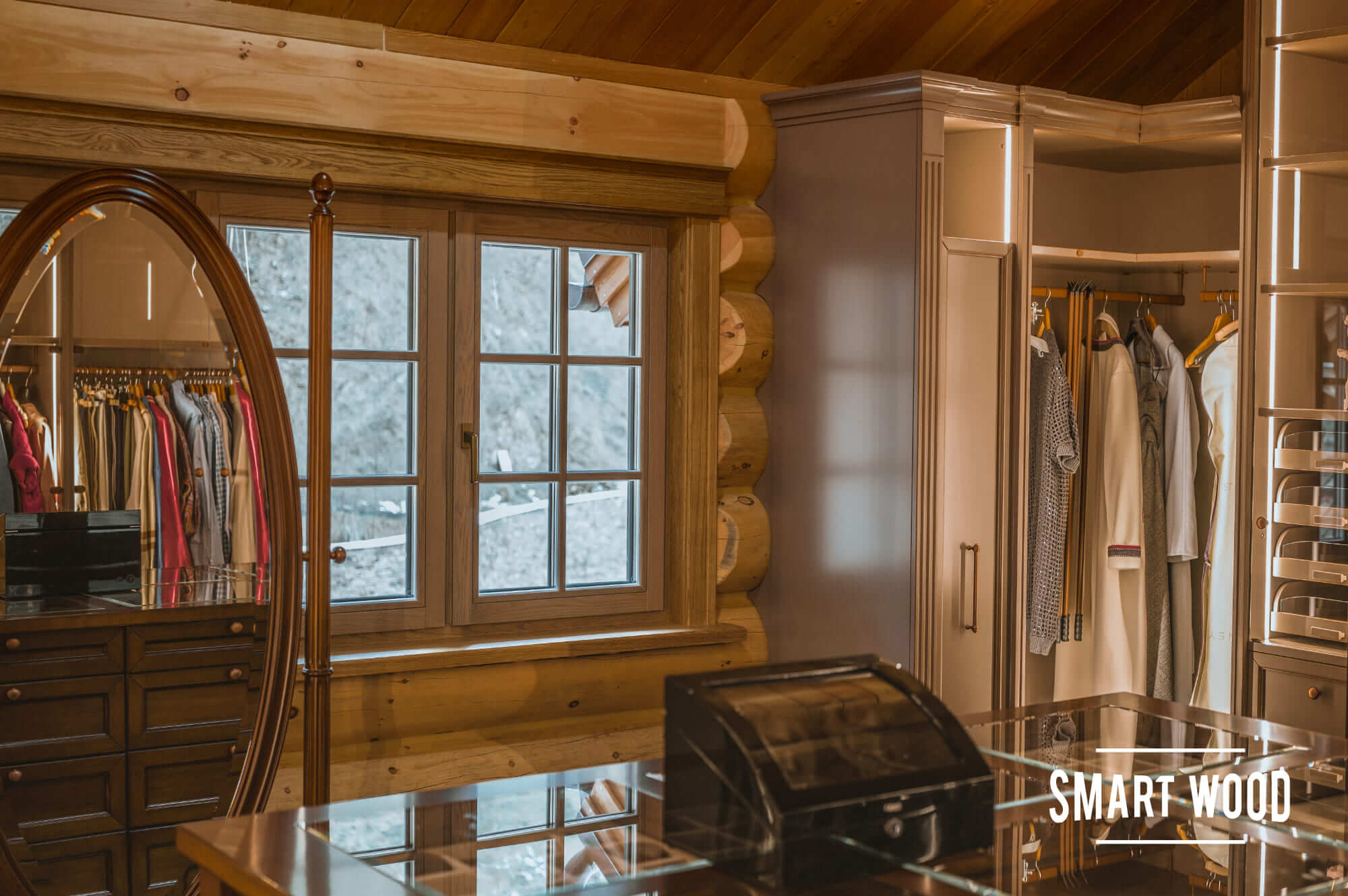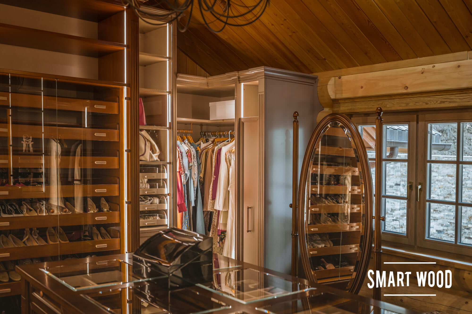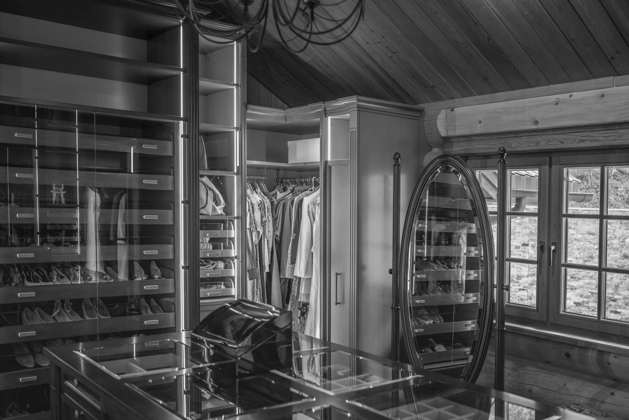 Казалось бы — гардеробная, что тут можно изобрести. Но вот как складывалась работа у нас. Первым делом мы провели полный детальный анализ всей одежды хозяев. Дальше — подробно обсудили с ними, какой образ жизни они планируют вести в конкретно этом доме в горах (в собственности владельцев есть еще один дом на побережье). Исходя из этого распределили гардероб по этим домам так, чтобы все нужное всегда было под рукой.