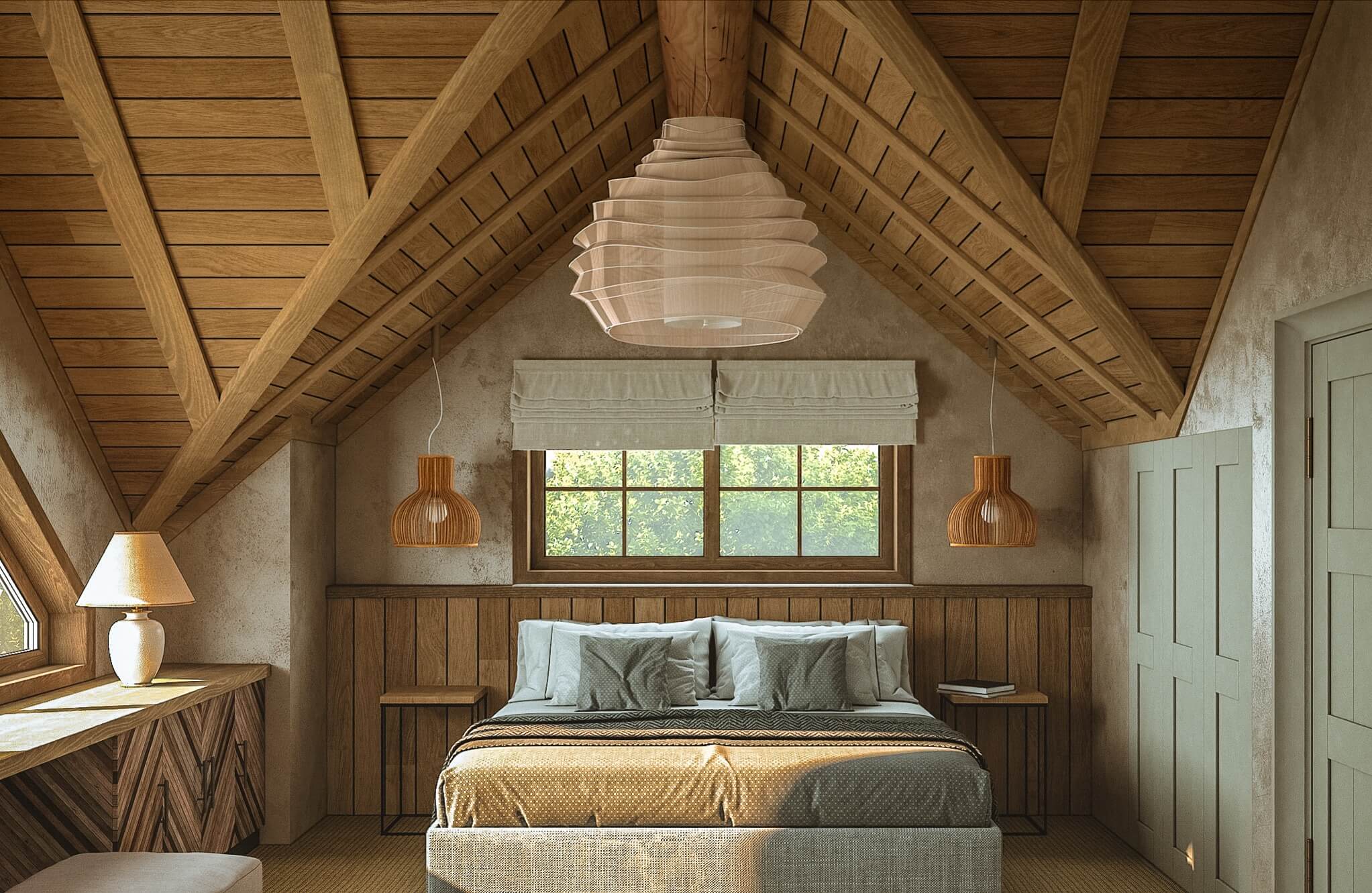 Совместно с заказчиком мы остановились на проекте большого гостевого дома с панорамными окнами и просторной гостиной. «Мериот» — второе строение на участке, где уже стоит основной жилой дом. Хозяева настояли на том, что он должен быть пригоден как для коротких визитов, так и для долгого проживания гостей. Поэтому дом полностью оснащен — здесь можно с удовольствие провести как уикенд, так и, например, зиму.