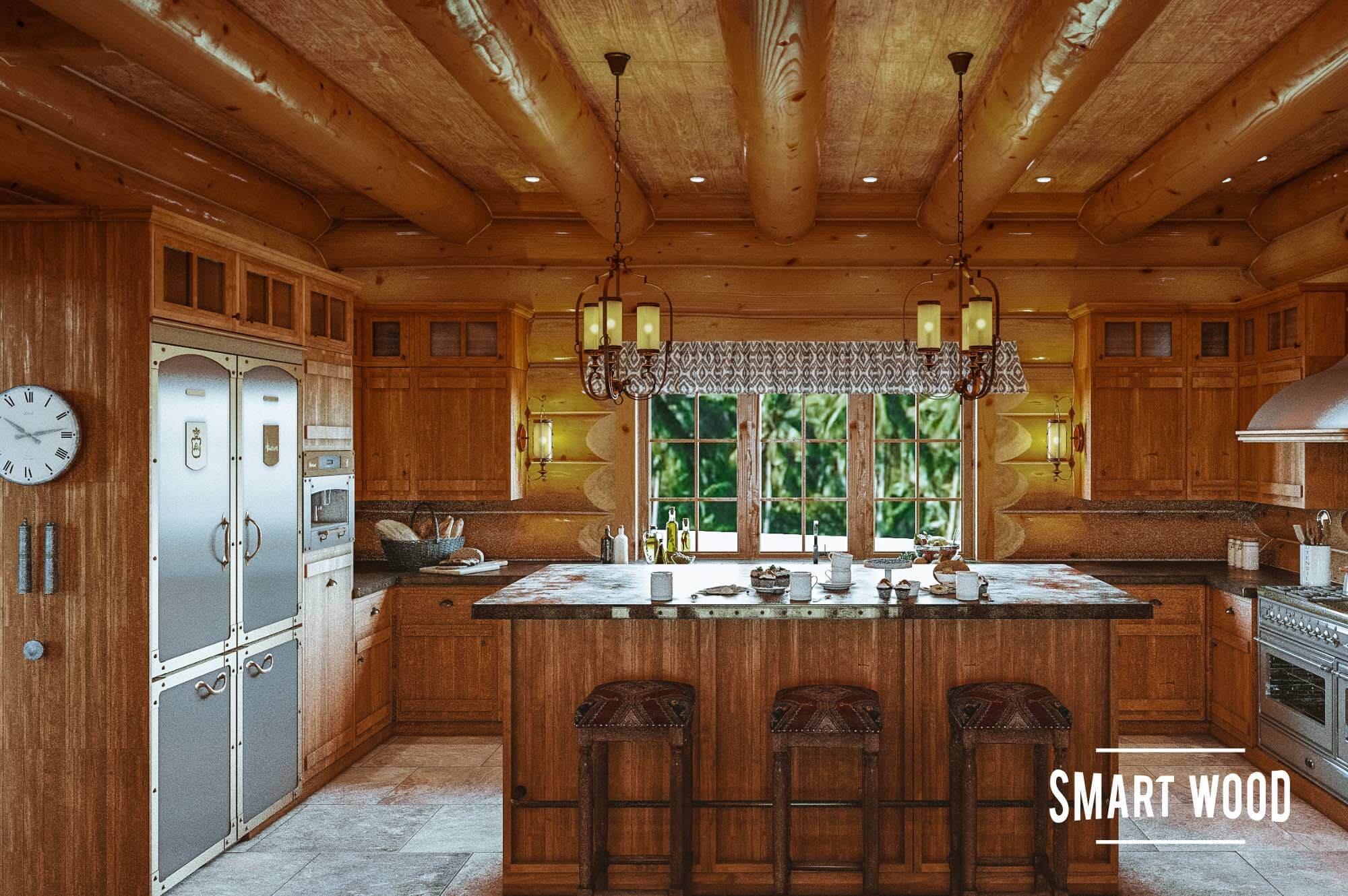 Функциональным особенностям кухни в деревянном доме мы посвятим отдельную, подробную публикацию в блоге. Тут есть, о чем поговорить — и пожарная безопасность, и особенности планировки и выбора материалов для покрытий. А пока — вдохновляющие картинки того, как могут выглядеть ваши кухня и столовая в загородном доме. Мысленно расставьте любимые продукты по полкам, рассадите семью за стол и расстаться с этой идеей будет сложно (по себе знаем).
