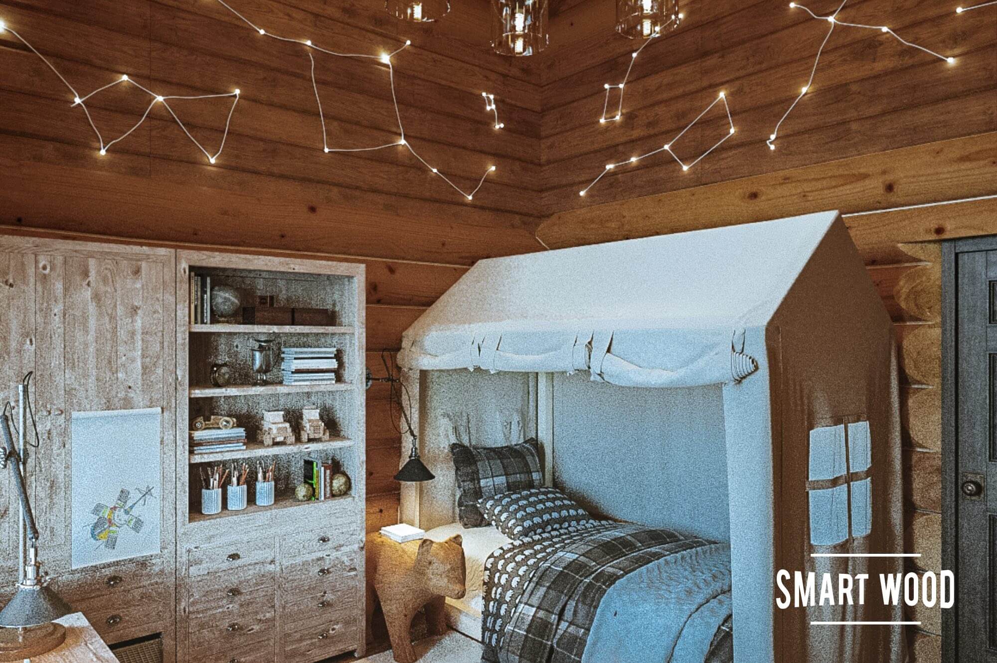А это — проект детской в одном из домов Smart Wood — теплый и натуральный. Несмотря на все стереотипы о том, что ребенку нужны яркие, почти неоновые цвета и обилие игрушек, мы предпочитаем спокойные, гармоничные решения. В таком интерьере малышу любого возраста будет комфортно, а цвет при желании можно добавить и менять, задействуя текстиль и декоративные элементы.