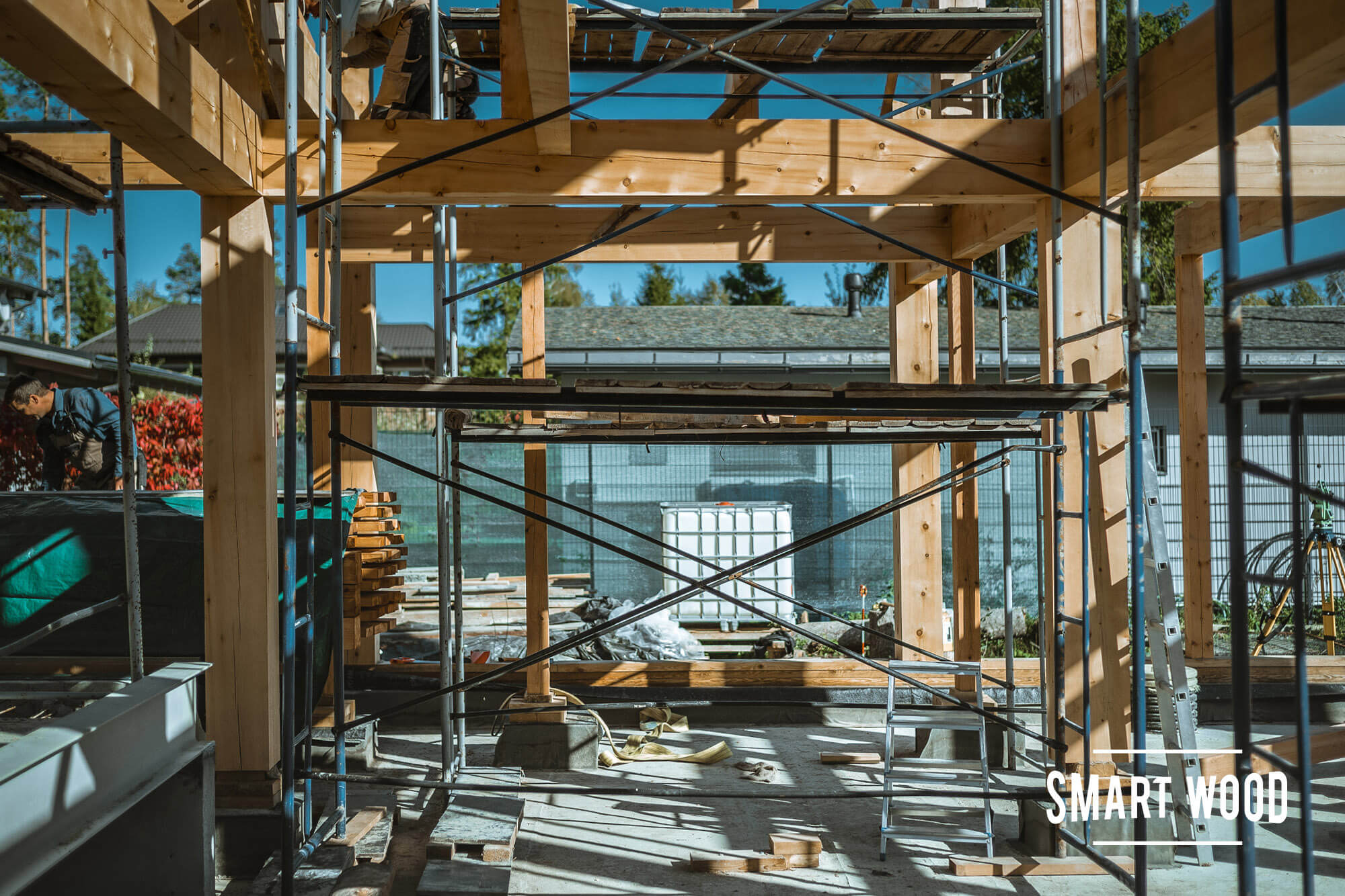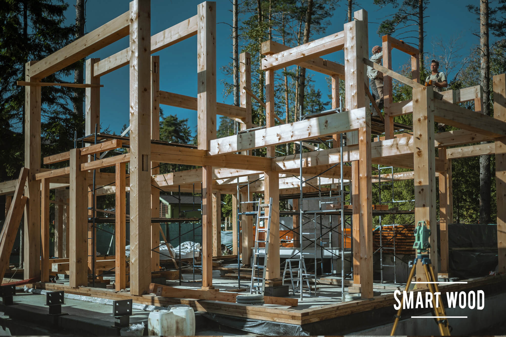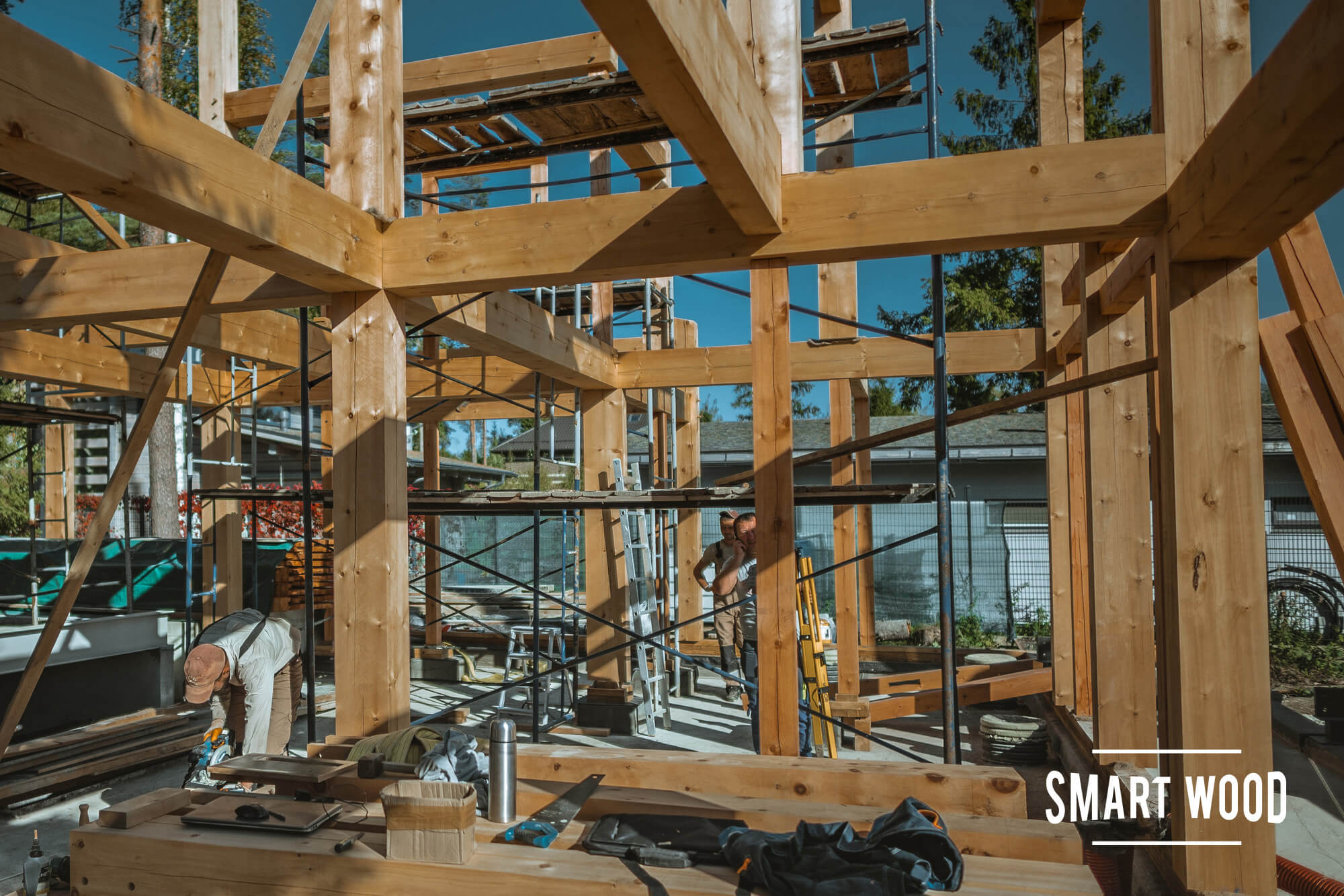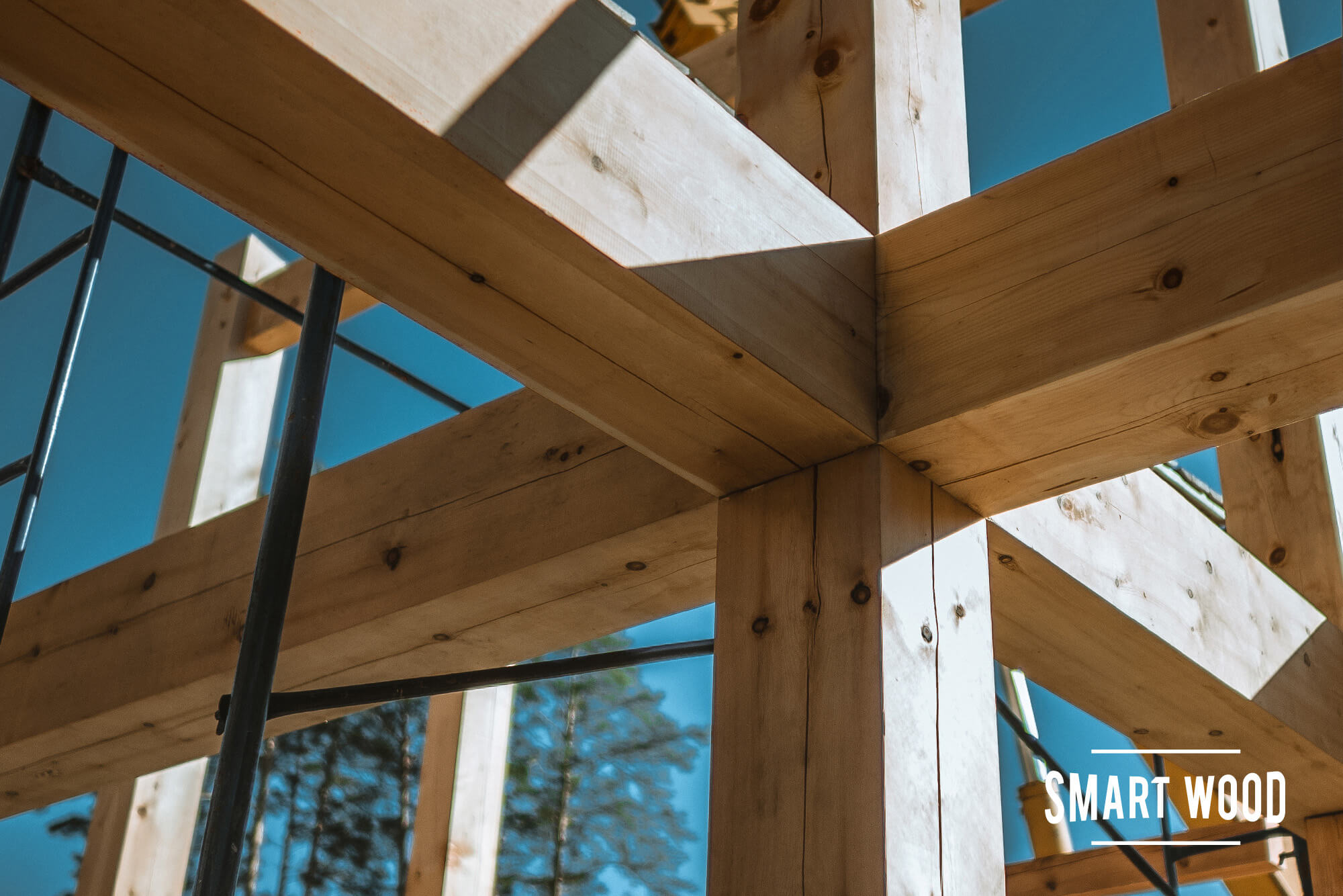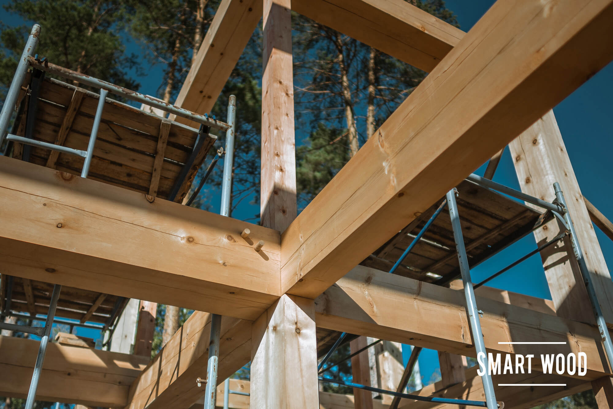 Он будет полностью построен из бруса большого сечения. Для строительства мы выбрали кедр — материал, который лучше прочих ведёт себя в сложных конструкциях благодаря своей прочности.