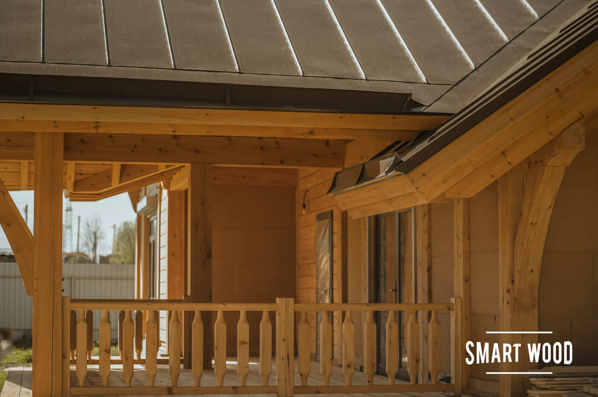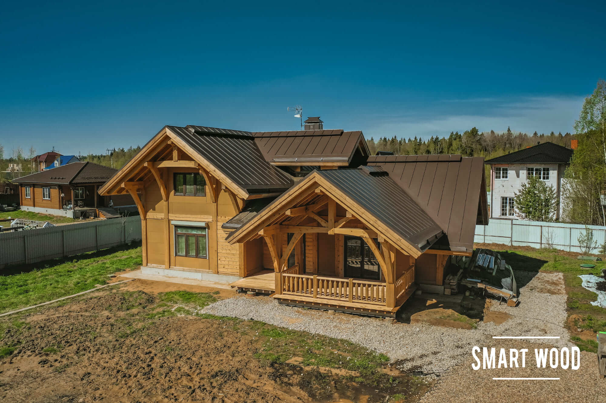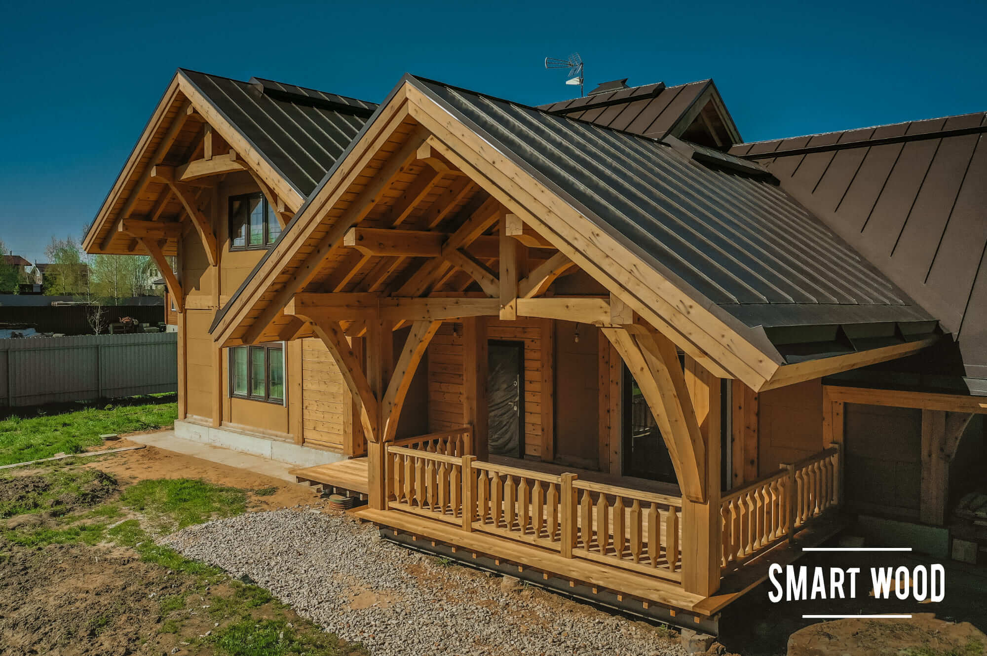 В Timber Frame мы сначала собираем комплект каркаса, а затем «одеваем» его крышей и стенами. И на этапе заполнения каркаса у нас два варианта: