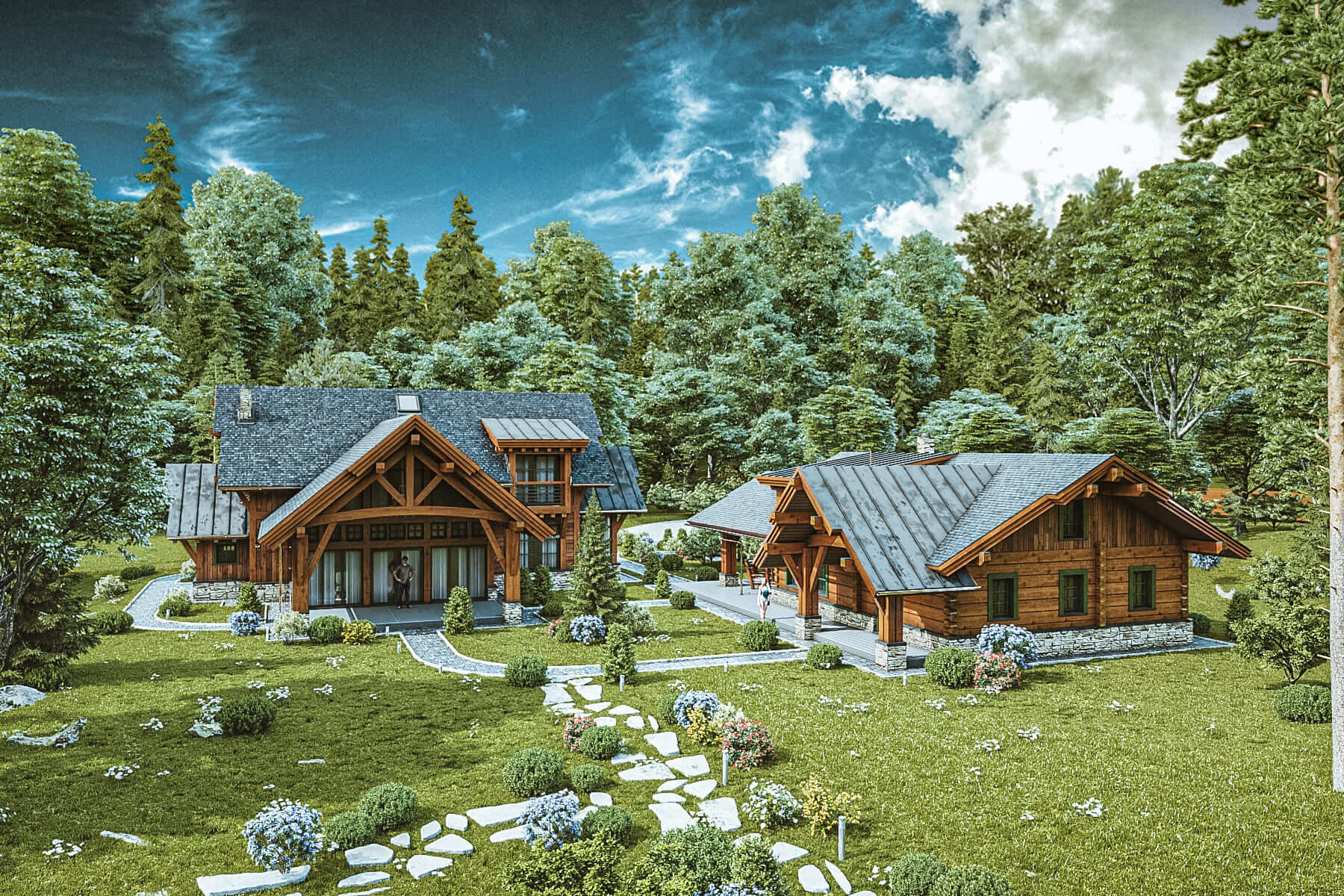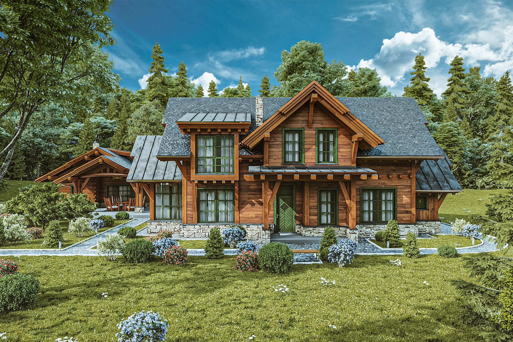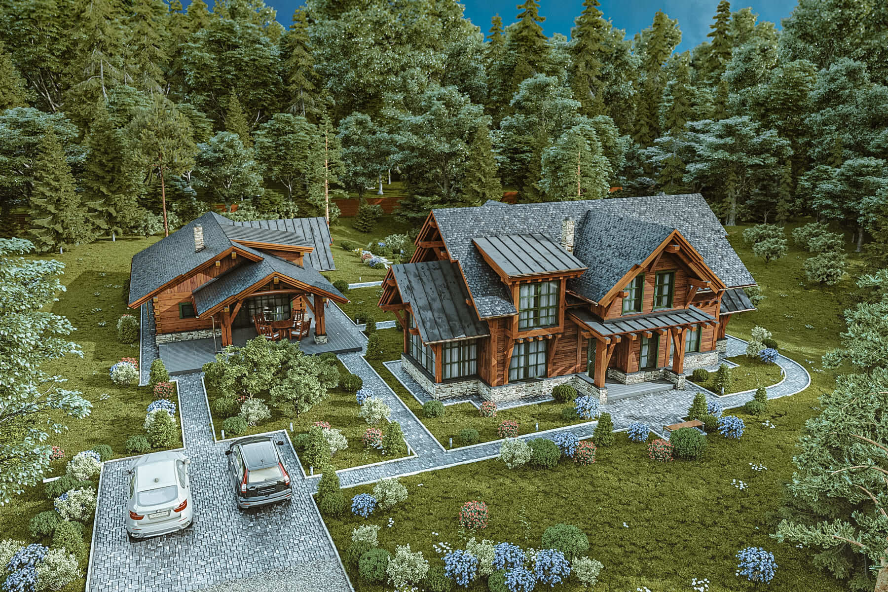 Двухэтажный каркасный дом в технологии Timber Frame площадью 250 кв.м. Зона отдыха и жилая зона разнесены по этажам.⁣⁣⠀