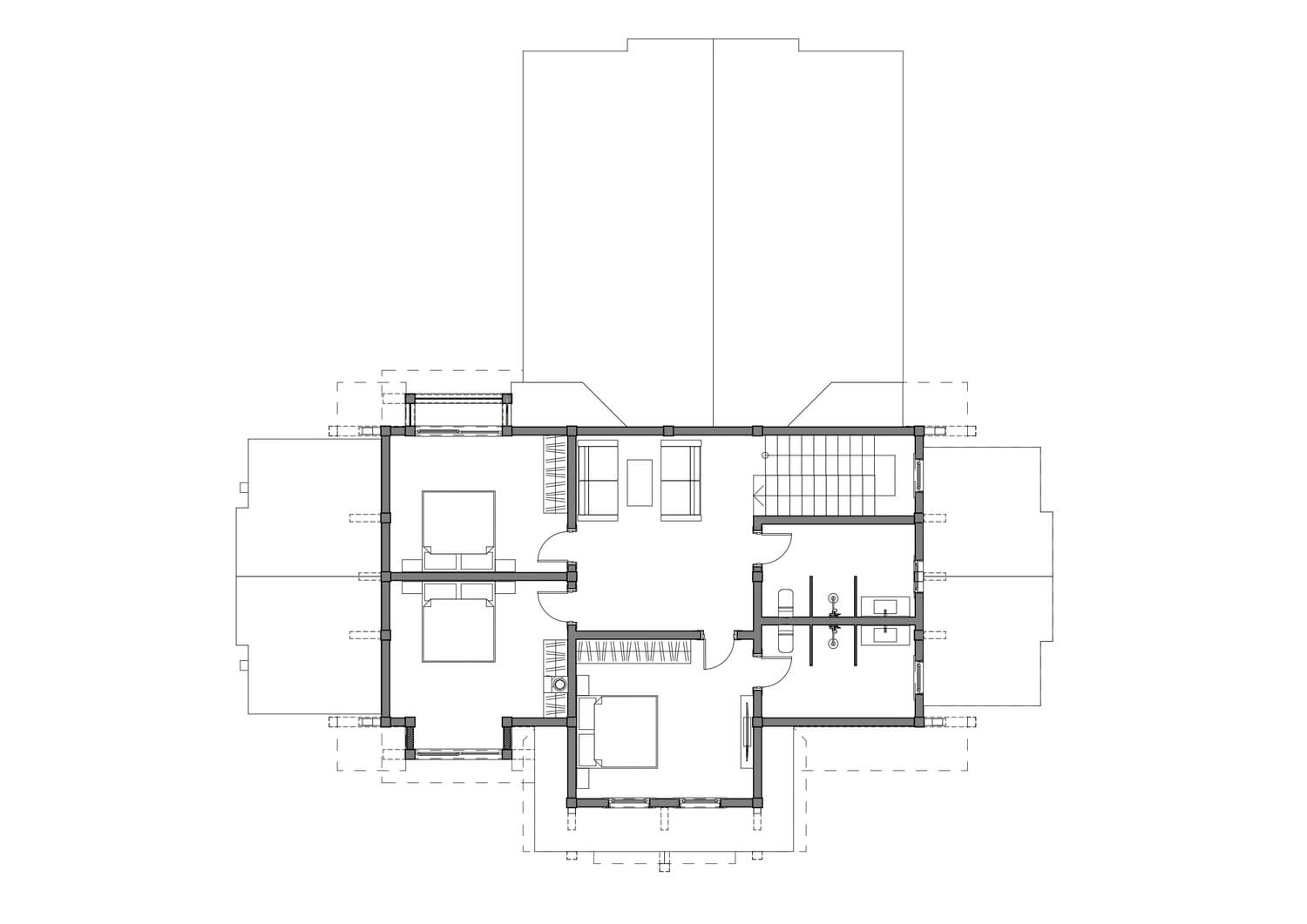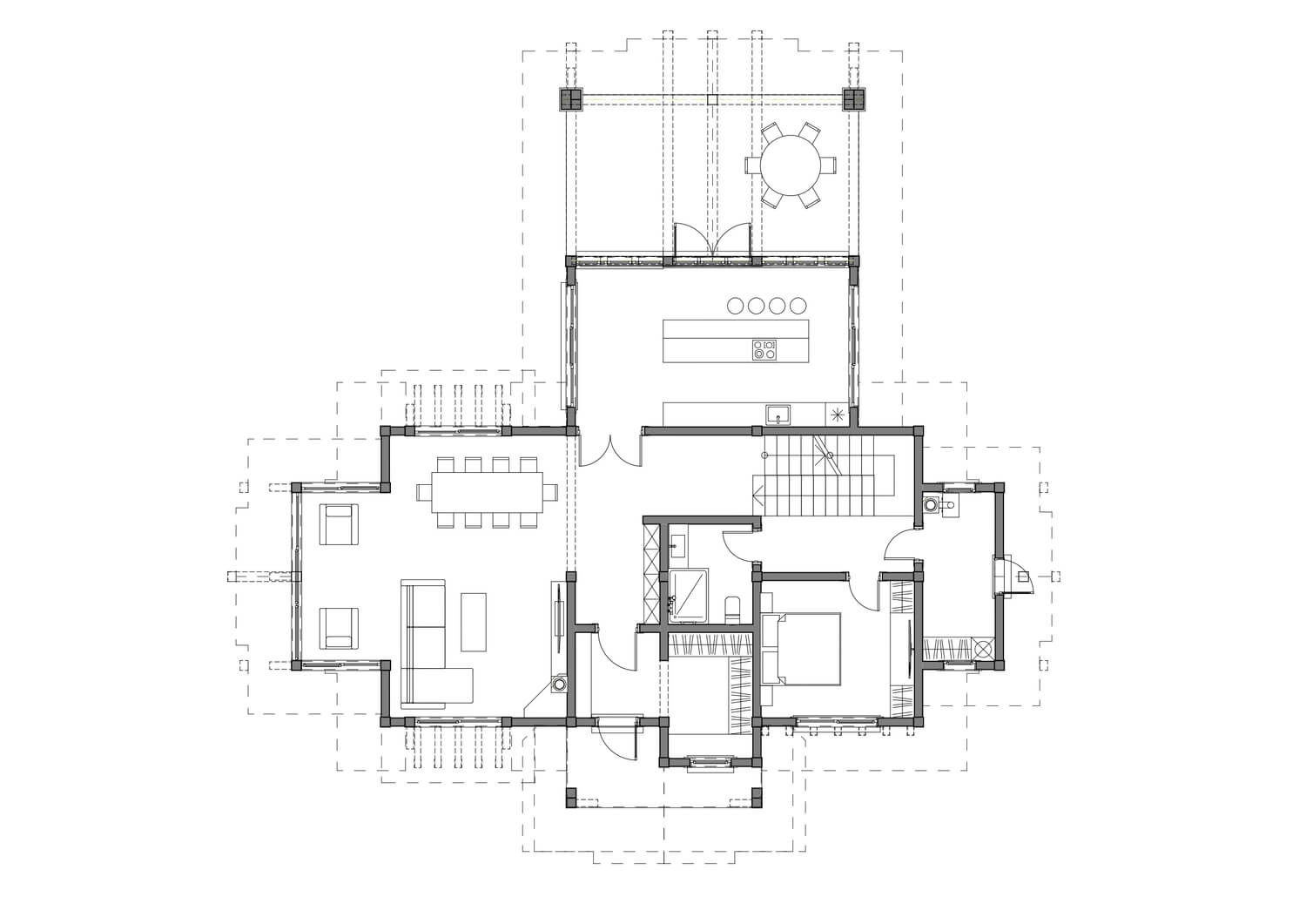 На первом этаже большая гостиная-столовая, кухня с выходом на террасу, гардеробная, гостевая комната с дополнительной душевой. Помещение постирочной и котельной спрятано от основной жилой зоны и имеет собственный вход. На втором этаже 3 спальни: две малых и мастер-спальня с отдельной душевой.⁣⁣⠀