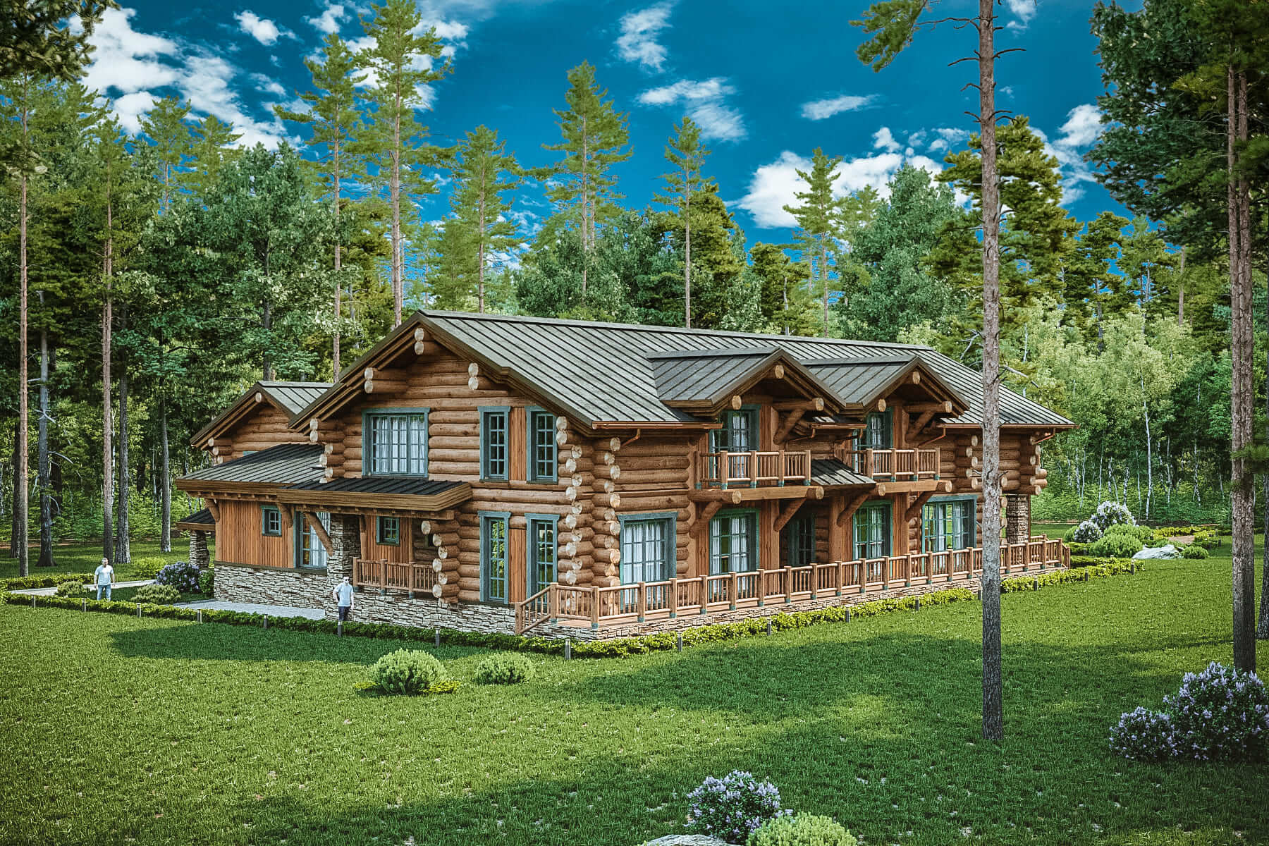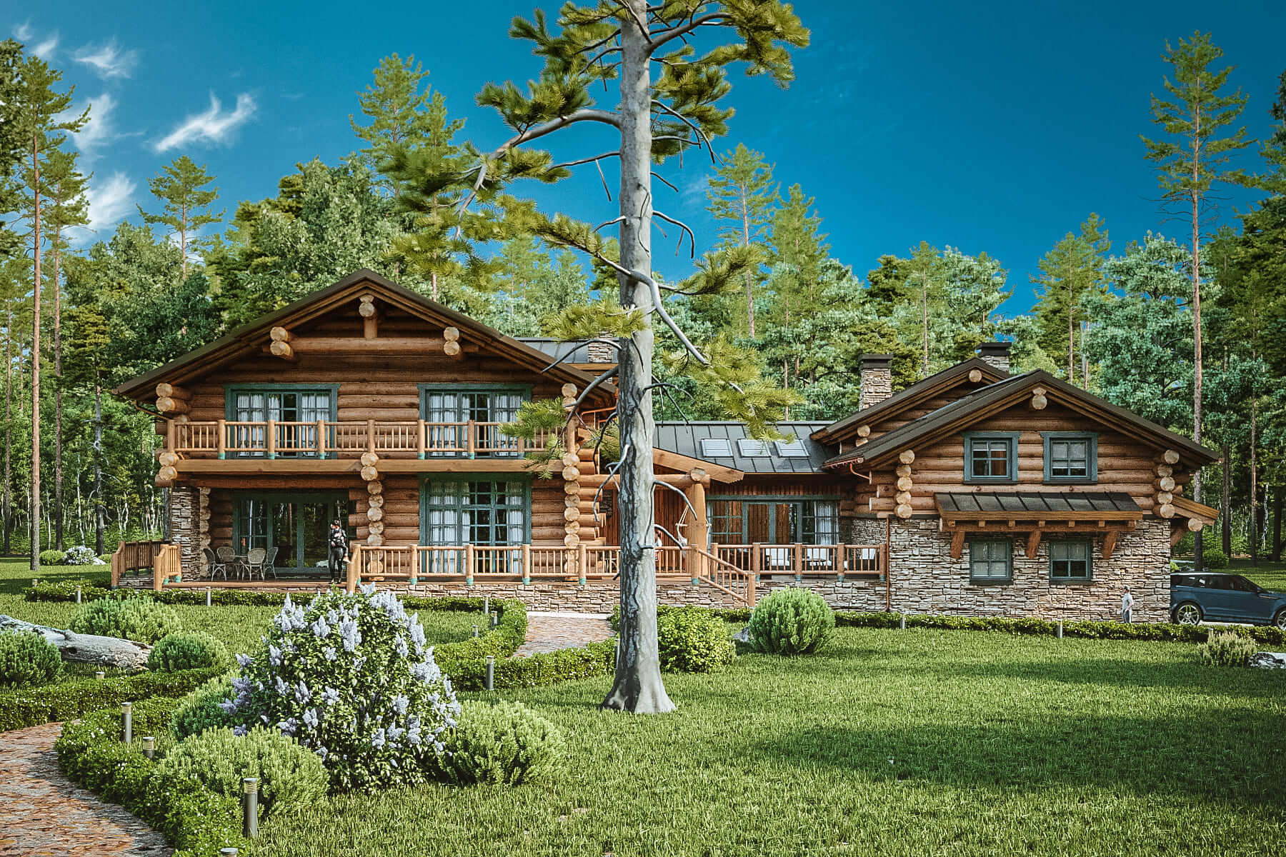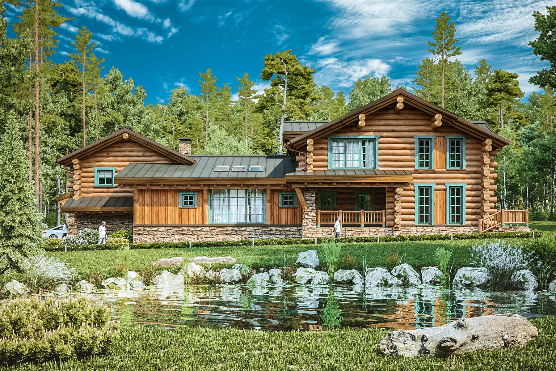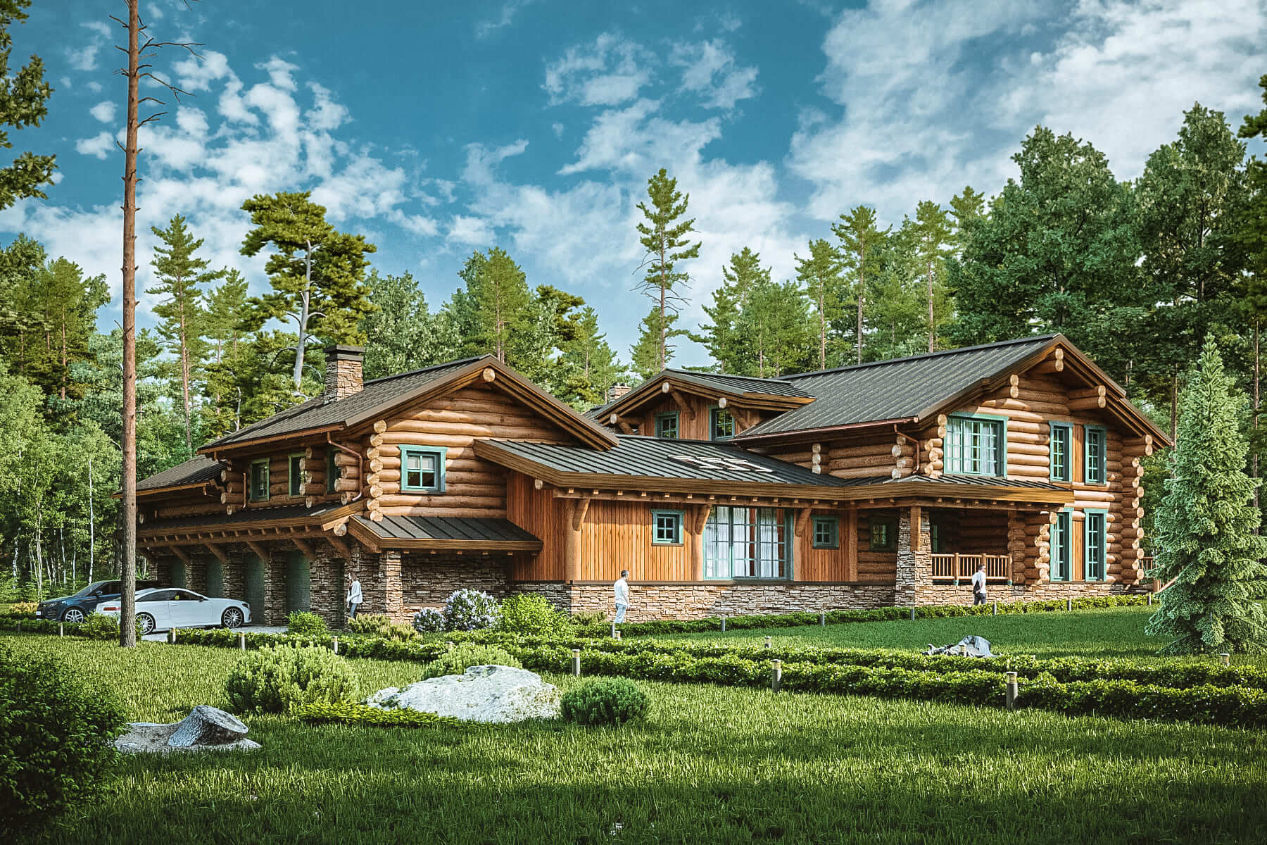 Бревенчатый дом с бассейном и гаражом на 4 авто вписать в 14 соток и не тронуть лес. Дом должен «врасти» в пространство.⁣⁣⁣⁣⠀