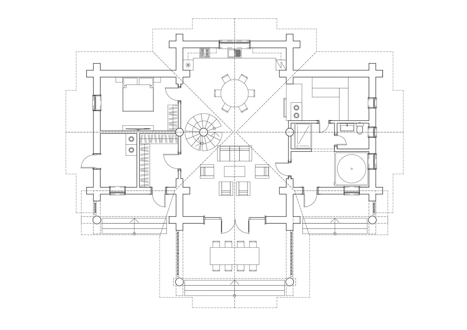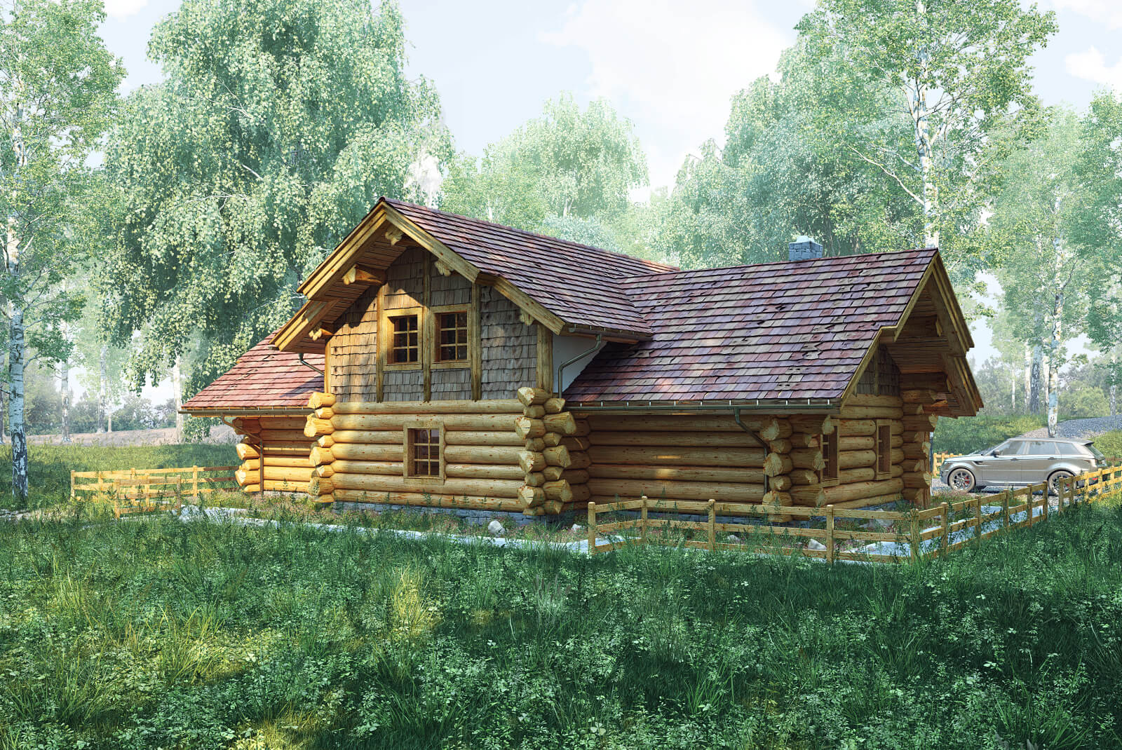 Жилой дом «Райна» — классическая архитектура Smart Wood, где первый этаж выполнен из рубленого бревна, собранного в канадскую седловидную чашу, а второй — каркас Post&Beam. В качестве материала мы предполагаем сибирский кедр, идеальный для сруба, построенного по усадочной технологии. Крыша дома — мягкая кровля от Tegola.